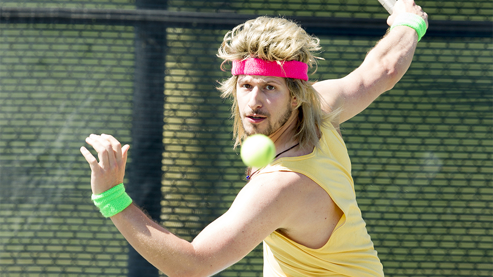 Samberg plays Aaron Williams, the adopted brother of Venus and Serena, in what the latter refers to as a “reverse ‘Blind Side.’” Williams is a brash, arrogant bad boy, who’s clearly meant to be a caricature of early-1990s Andre Agassi right down to the ridiculous mullet. Samberg has a way with boneheaded jerks, and he really gives it his all. There are some great comic details here, from his Jordache Jeans endorsement deal to his tomcatting around Las Vegas with a sketchy David Copperfield, who does some great self-parody.